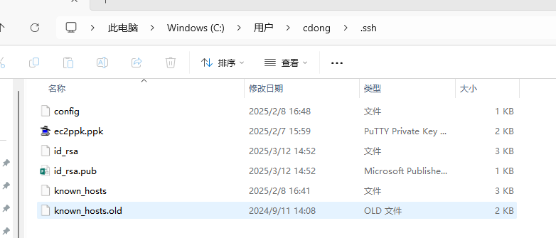 之后你就能在当前用户目录下的.ssh目录看到生成的公钥和私钥了