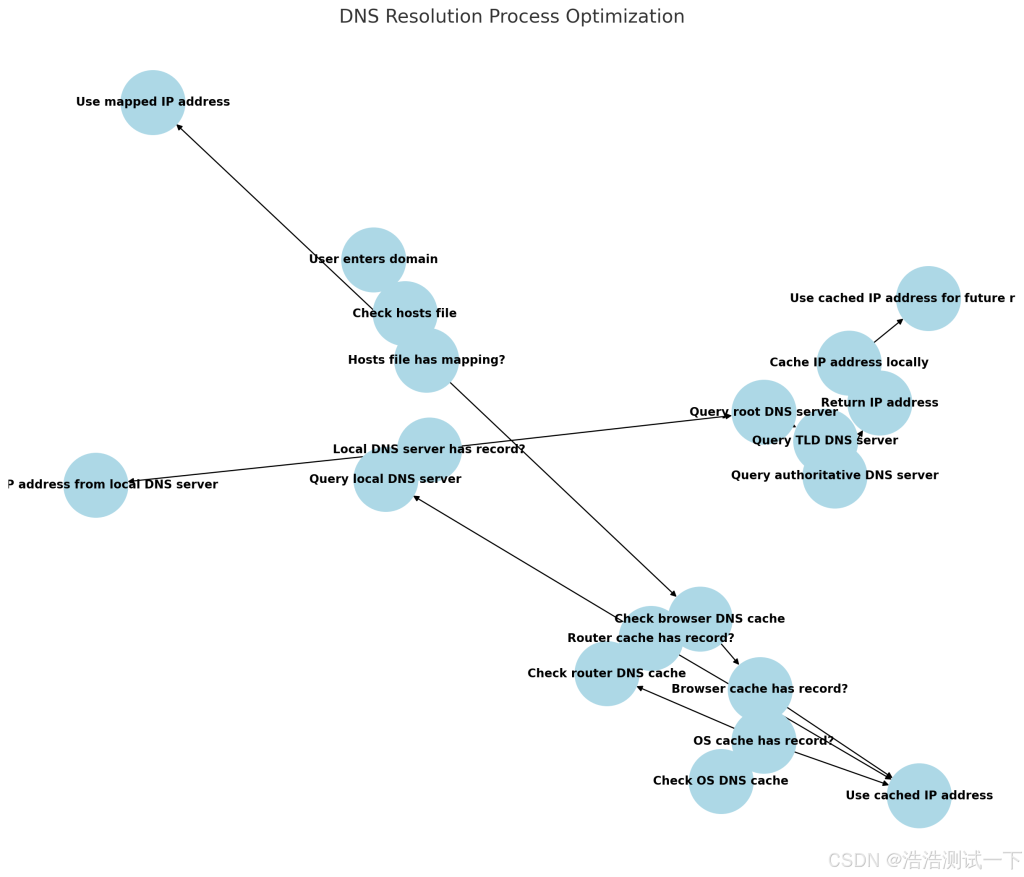 • 查询权威DNS服务器:获取域名的最终IP地址。
