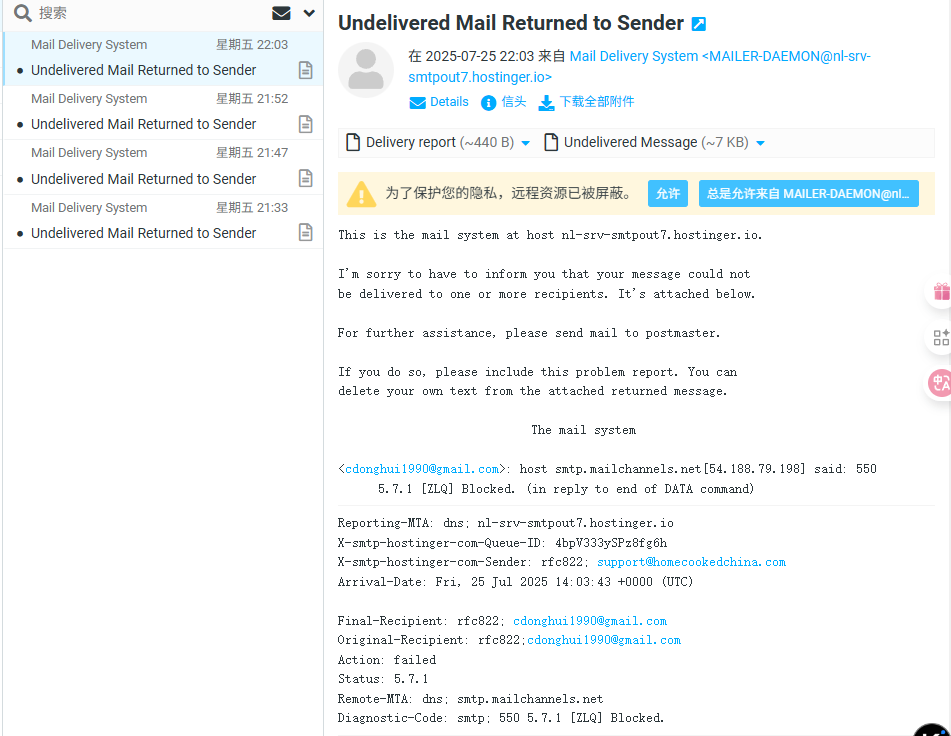 Reply-To,需要与发件箱保持一致,否也会认为是垃圾邮件。这两点是我这一次在配置过程中遇到的,导致邮件一直发不出去,错误如下: